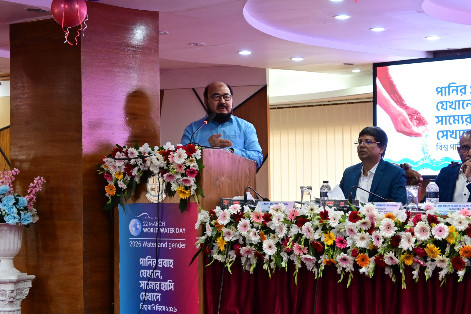 প্রধান অতিথি হিসেবে স্থানীয় সরকার, পল্লী উন্নয়ন ও সমবায় মন্ত্রী বলেন, পানিই জীবন—কিন্তু পানির সংকট এখন বিশ্বব্যাপী। দুঃখজনকভাবে নিরাপদ পানির উৎস দিন দিন কমে যাচ্ছে, বিশেষ করে ঢাকায় এই সংকট আরও তীব্র। তিনি ভূগর্ভস্থ পানির উপর নির্ভরতা কমিয়ে ভূ-উপরিস্থ পানি ও বৃষ্টির পানি ব্যবহারের ওপর গুরুত্ব দেওয়ার আহ্বান জানান।
