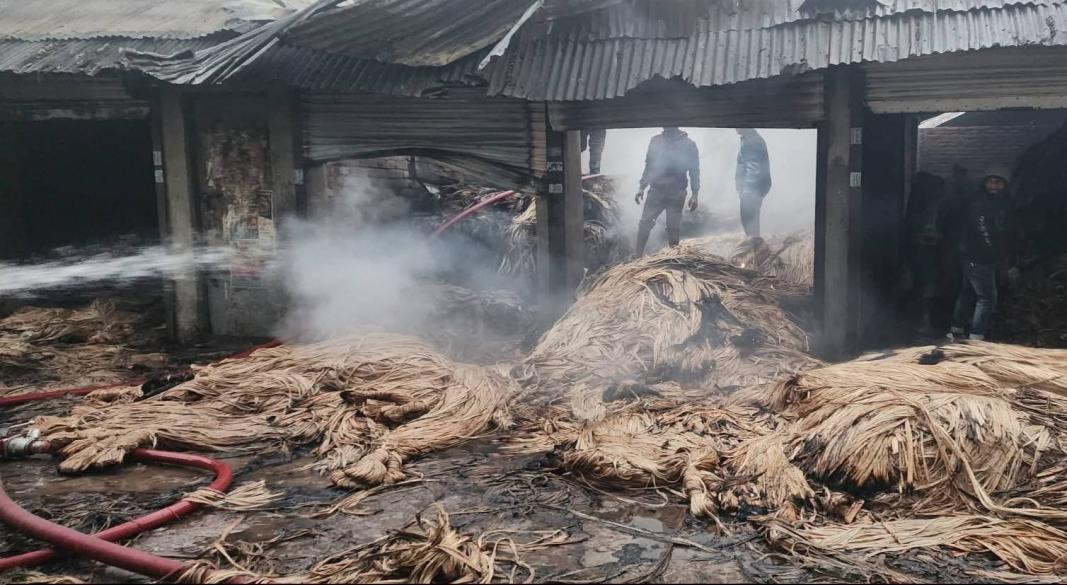 গোপালগঞ্জ জেলার মুকসুদপুর উপজেলায় আজ একটি পাটের গুদামে অগ্নিকান্ডের ঘটনা ঘটেছে। এ ঘটনায় গুদামে রাখা অনেক পাট পুড়ে গেছে।