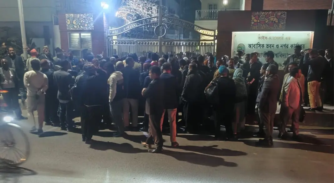 বকেয়া বেতন ভাতা, পদোন্নতির জন্য জাতীয় বিশ্ববিদ্যালয়ের ভাইস চ্যান্সেলরের (ভিসি) বাসভবনের গেটের সামনে অবস্থান কর্মসূচি পালন করছে জাতীয় বিশ্ববিদ্যালয়ের শিক্ষকরা। তাদের পক্ষ থেকে ১৫ জন জাতীয় বিশ্ববিদ্যালয়ের শিক্ষক প্রতিনিধি বাসভবনের ভিতরে প্রবেশ করে ভিসির সঙ্গে মতবিনিময় করছেন।