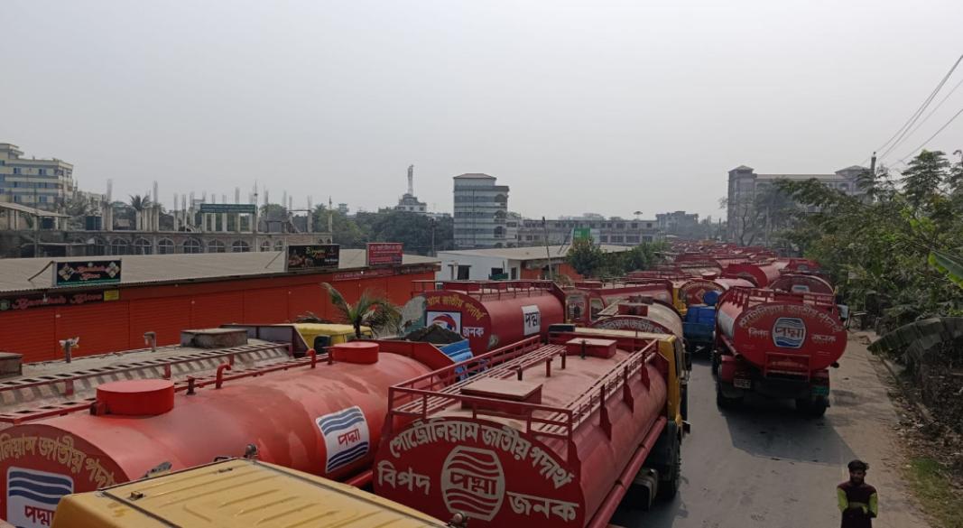 বৃহস্পতিবার (৫ মার্চ) সকাল থেকে সিদ্ধিরগঞ্জের মেঘনা ও পদ্মা অয়েল ডিপোর সামনে শতাধিক তেলবাহী ট্যাংকলরী সারিবদ্ধভাবে অপেক্ষা করতে দেখা যায়।