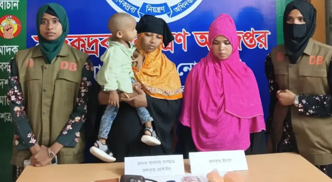 নোয়াখালীতে ১৫ মাস বয়সী একটি শিশুকে ব্যবহার করে ইয়াবা পাচারের অভিযোগে কক্সবাজারের দুই নারীকে গ্রেপ্তার করেছে মাদকদ্রব্য নিয়ন্ত্রণ অধিদপ্তর, র্যাব ও ডিবি পুলিশ-এর যৌথ দল।