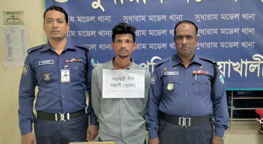 জানা গেছে, গোপন সংবাদের ভিত্তিতে রোববার বিকেল ৩টা ১০ মিনিটে সুধারাম থানাধীন ১নং চরমটুয়া ইউনিয়নের খলিশাটোলা এলাকার লোকমানের চা দোকানের সামনে থেকে মো. মুরাদকে গ্রেপ্তার করা হয়। এ সময় তার কোমরের পেছনে প্যান্টের বেল্টে গোঁজানো অবস্থায় একটি বিদেশি পিস্তল, দুই রাউন্ড গুলি ভর্তি একটি ম্যাগজিন উদ্ধার করা হয়।
