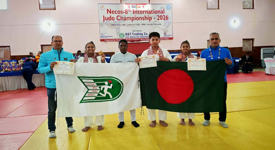 নেপাল জুডো ফেডারেশন আমন্ত্রণমূলক আন্তর্জাতিক প্রতিযোগিতায় বাংলাদেশের বিকেএসপির ছয়জন জুডোকা অংশগ্রহণ করছেন। আজ তিন ইভেন্টের মধ্যে দুটি স্বর্ণ ও একটি ব্রোঞ্জ পদক জিতেছে বাংলাদেশ। পদক জয়ের বিষয়টি নিশ্চিত করেছেন বিকেএসপির সাবেক শিক্ষার্থী ও ময়মনসিংহ জেলার ক্রীড়া অফিসার আল আমিন সবুজ।