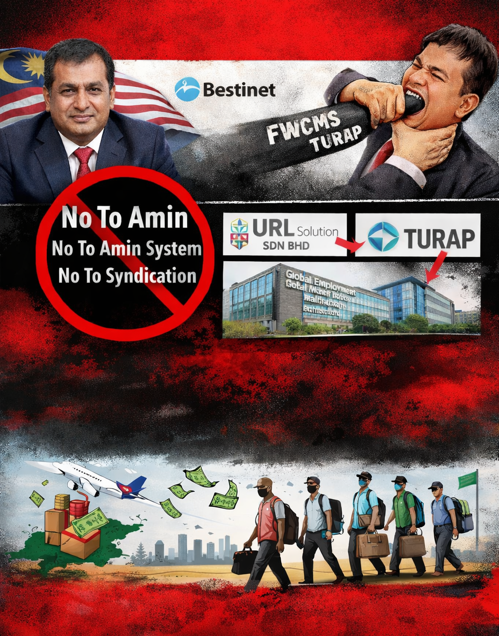ব্যক্তির নাম দাতো শ্রী মোহাম্মদ আমিন, প্রতিষ্ঠানের নাম বেষ্টিনেট, সিস্টেমের নাম fwcms। এই সিস্টেমের কারণে সিন্ডিকেট সৃষ্টি হয়েছে, এই সিস্টেমের কারণে অনেকেই ব্যবসার জন্য, বেঁচে থাকার জন্য সিন্ডিকেটে ঢুকেছে, এই সিস্টেমের কারনে ৪/৫/৬ লক্ষ টাকা খরচ করে একটা কর্মী মালয়েশিয়া যেতে বাধ্য হয়েছে।