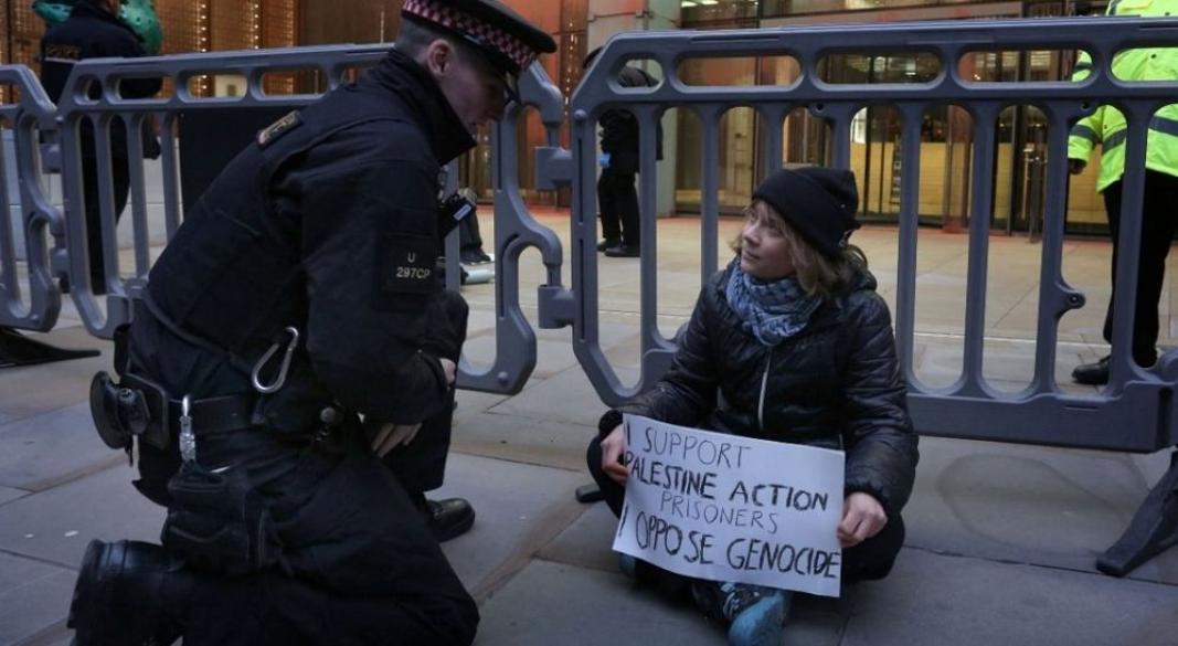 যুক্তরাজ্যভিত্তিক আন্দোলনকারী সংগঠন প্রিজনার্স ফর প্যালেস্টাইন জানিয়েছে, 'আমি প্যালেস্টাইন অ্যাকশন বন্দিদের সমর্থন করি। আমি গণহত্যার বিরোধিতা করি'—এমন লেখা সংবলিত একটি প্ল্যাকার্ড বহনের অভিযোগে সন্ত্রাসবিরোধী আইনে গ্রেটা থুনবার্গকে গ্রেফতার করা হয়েছিল।